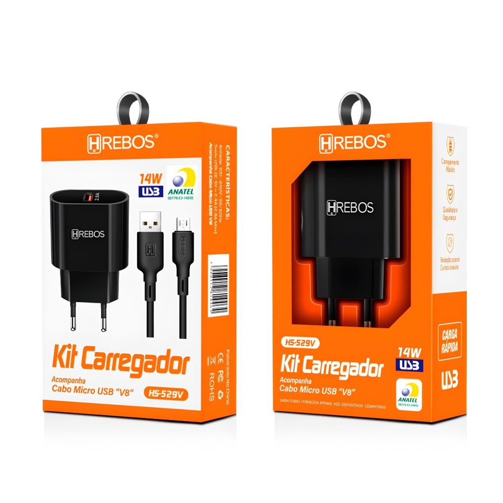 Carregador Completo Turbo 14W Micro USB V8 Hrebos HS-529V
