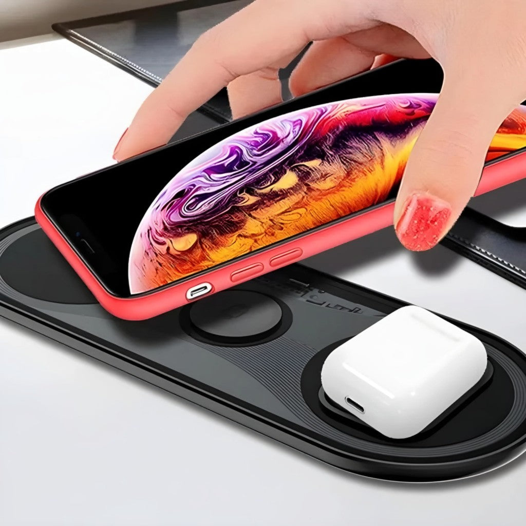 Com capacidade de carregamento rápido de até 18W para smartphones e 5W para smartwatch e fones sem fio, a estação de carregamento garante que seus dispositivos sejam carregados rapidamente e estejam sempre prontos para uso.