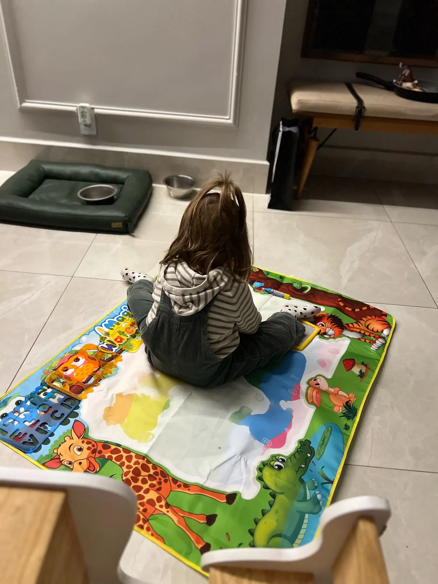 【Seguro e fácil de limpar】Este tapete de pintura anti-sujeira para crianças é feito de poliéster macio, atóxico, não poluente e seguro o suficiente para crianças pequenas. A almofada traseira é feita de nylon impermeável, para que você não precise se preocupar em molhar o chão. O tapete mágico para rabiscos não requer tinta ou tinta, basta encher a caneta com água limpa e desenhar no tapete de água, e ele desaparecerá magicamente após 3 a 10 minutos (dependendo da temperatura e do fluxo de ar). Não é necessária limpeza adicional e as crianças podem reutilizá-lo.