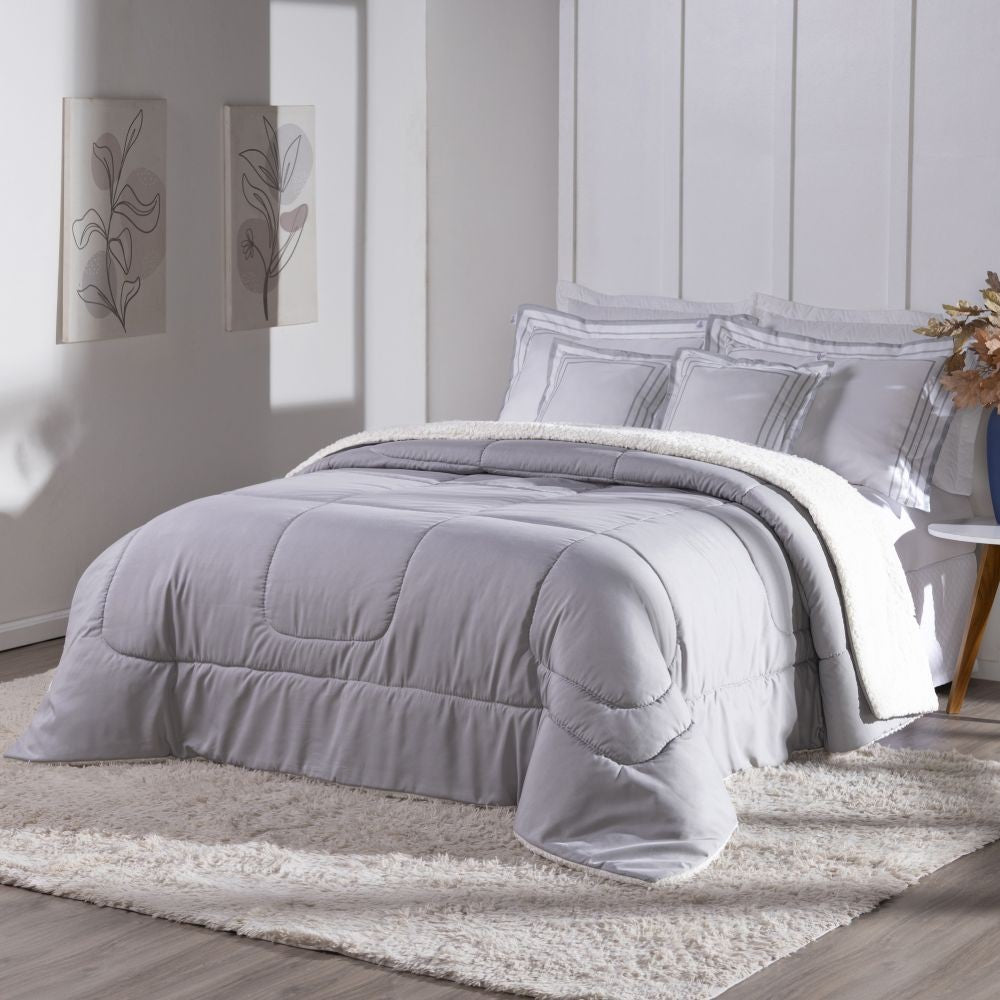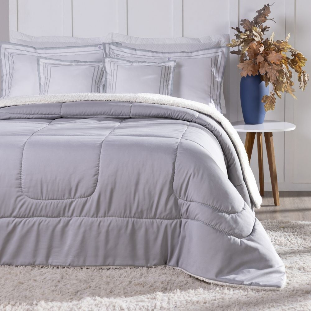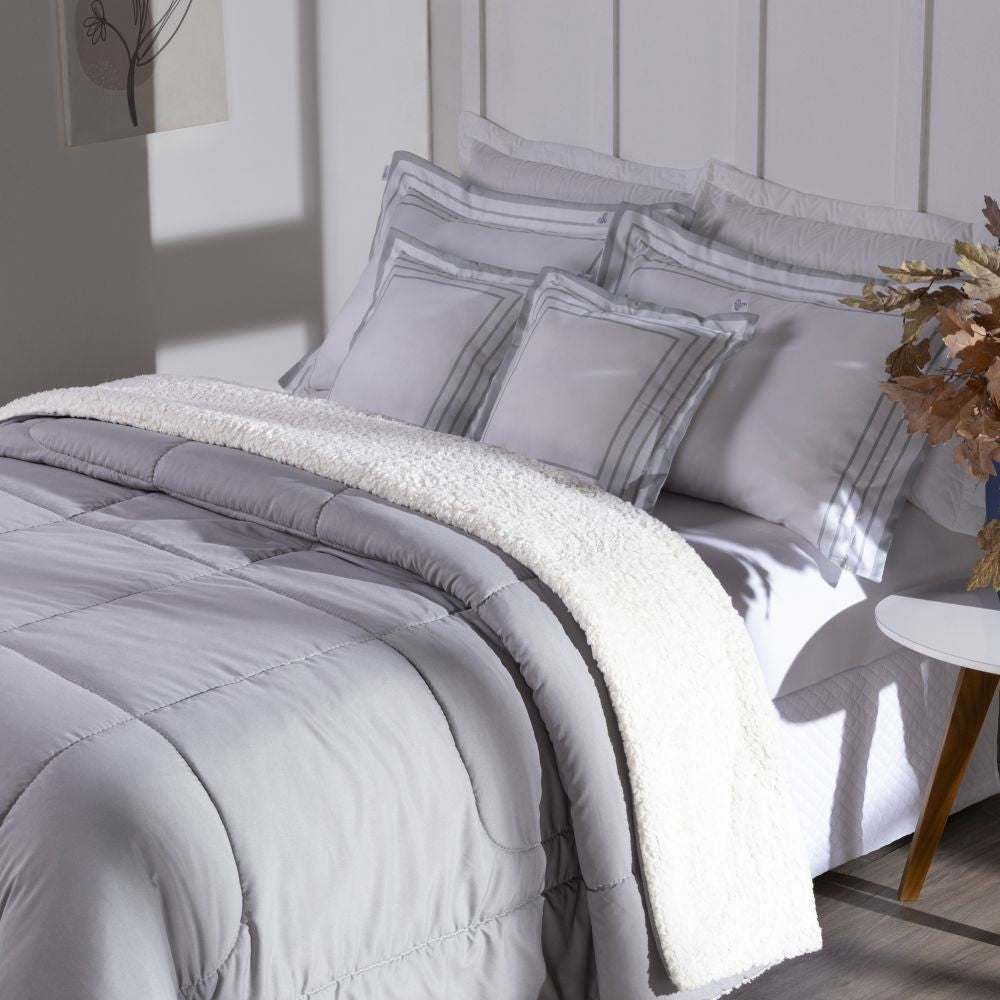 Descubra o Coberdrom Soft, a escolha perfeita para unir estilo, conforto e praticidade nas suas noites. Com design dupla face, você pode aproveitar o toque sofisticado do hipercal 400 fios de um lado e a maciez acolhedora da sherpa, que simula a textura da lã de carneiro, do outro.